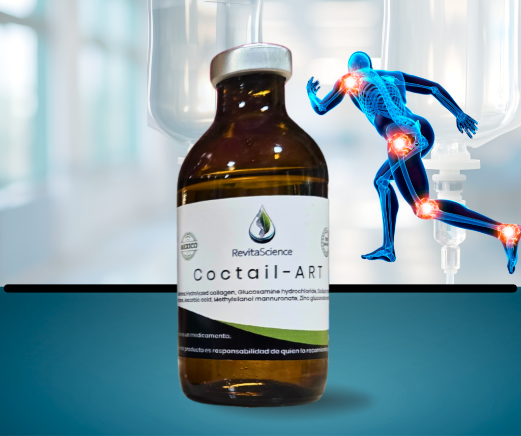 Coctail Art es un suero intravenoso diseñado para el cuidado y regeneración de las articulaciones, formulado con aminoácidos bioactivos, glicosaminoglicanos, minerales esenciales y cofactores antioxidantes. Su objetivo es nutrir, reparar y proteger el cartílago articular, reducir la inflamación y mejorar la movilidad en pacientes con desgaste o daño articular.